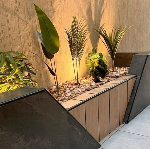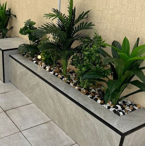 استخدم نباتات تتحمل الحرارة مثل الصبار، الجهنمية، والفيكس. يمكن زراعتها في أحواض مرتفعة أو على الجدران باستخدام أنظمة الزراعة الرأسية.