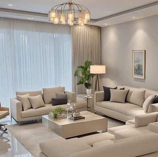 يجب أن يكون توزيع الجلسات دائريًا أو شبه دائري لتسهيل التواصل. اترك مساحة كافية للحركة، ووزّع الطاولات الجانبية بشكل متوازن. لا تكدّس الأثاث، فالبساطة تعني فخامة.